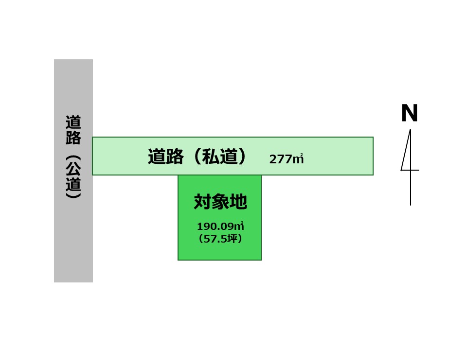 | 道路 | 西(公道)4.0m、北(私道)6m |